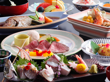 日本海の旬のお造りや、肉料理!北陸の食材を知り尽くした料理長がおススメするその時季の美味いものを彩り豊かに盛り付けました♪『能登ならでは』の味覚をご堪能ください!